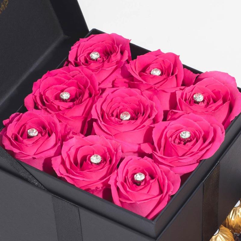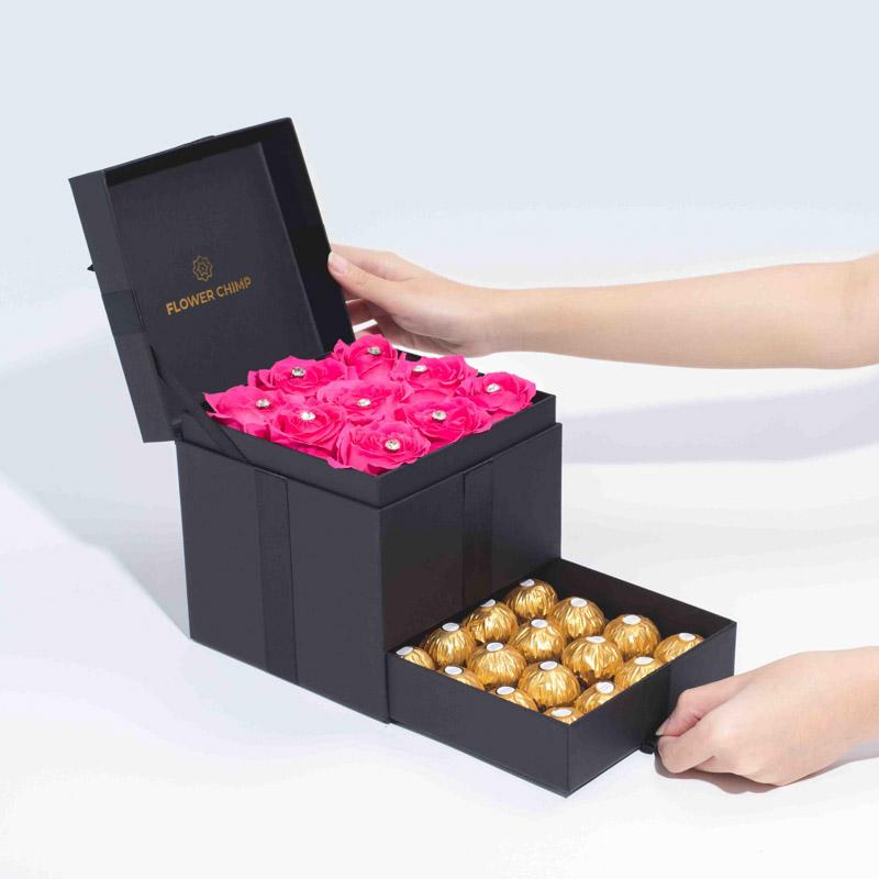 A treasure trove of timeless romance, passion and a little bit of magic; presented elegantly in a box of fresh roses and chocolates fit for that burning love of your life.