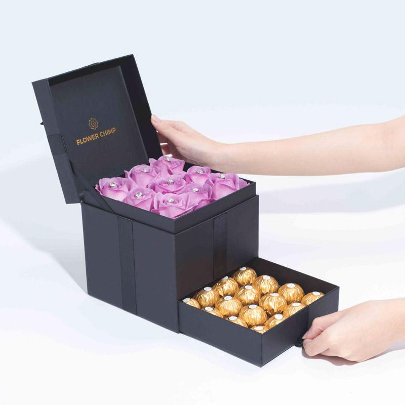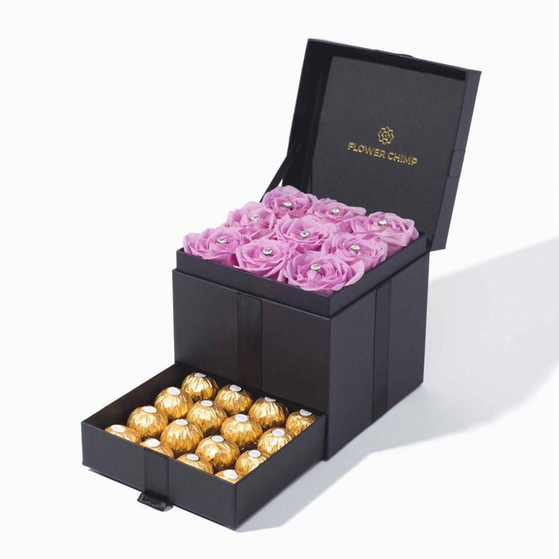 A treasure trove of timeless romance, passion and a little bit of magic; presented elegantly in a box of fresh roses and chocolates –fit for that burning love of your life.
