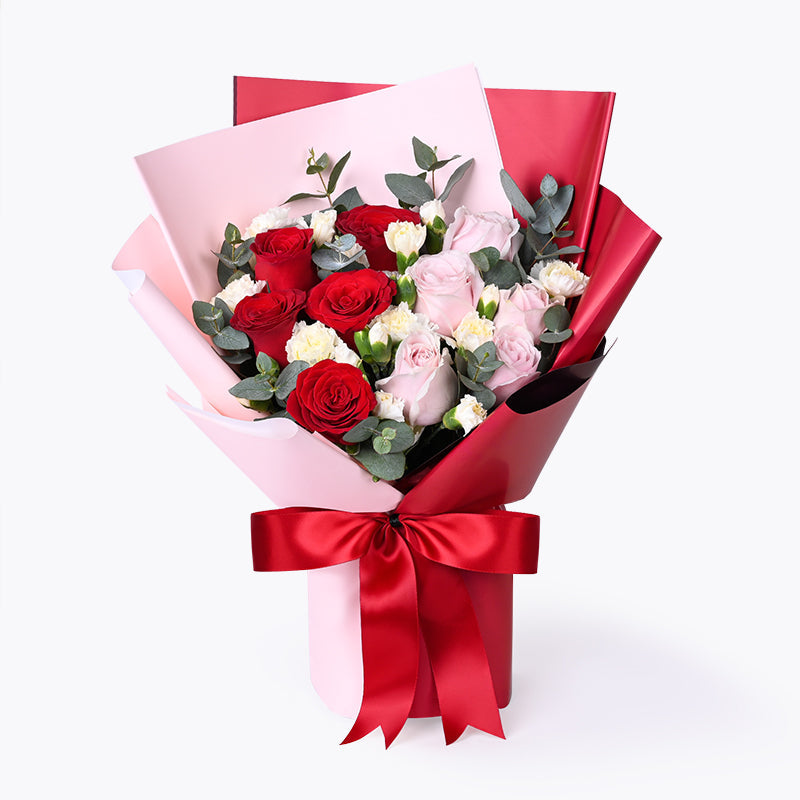 A symbol of love and admiration, Pure Romance speaks volumes without saying a word. Featuring 5 red roses that embody heartfelt devotion, paired with delicate white statice and lush parvifolia eucalyptus, this bouquet beautifully captures timeless affection with simple elegance.